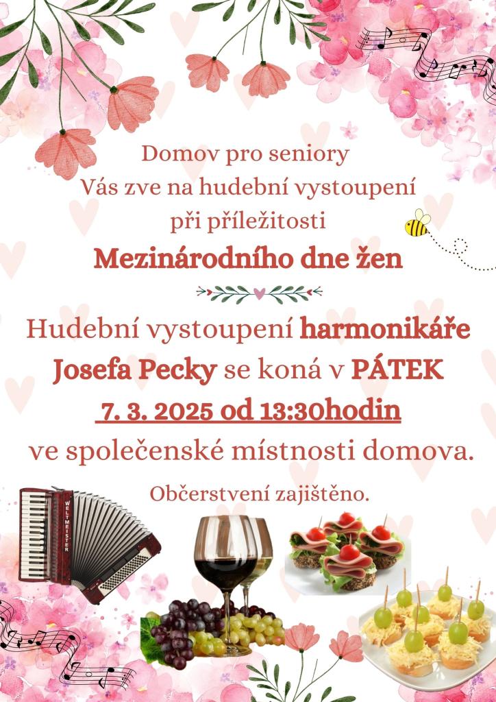 Oslava MDŽ 1 Oslava MDŽ s hudebním doprovodem harmonikáře pana Pecky a slanou kavárnou.